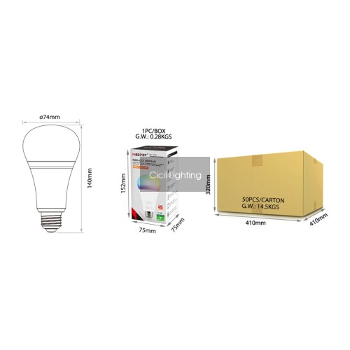 Mi-Light FUT105ZR E27 RGB+CCT LED Lamp 12W Zigbee + 2.4G